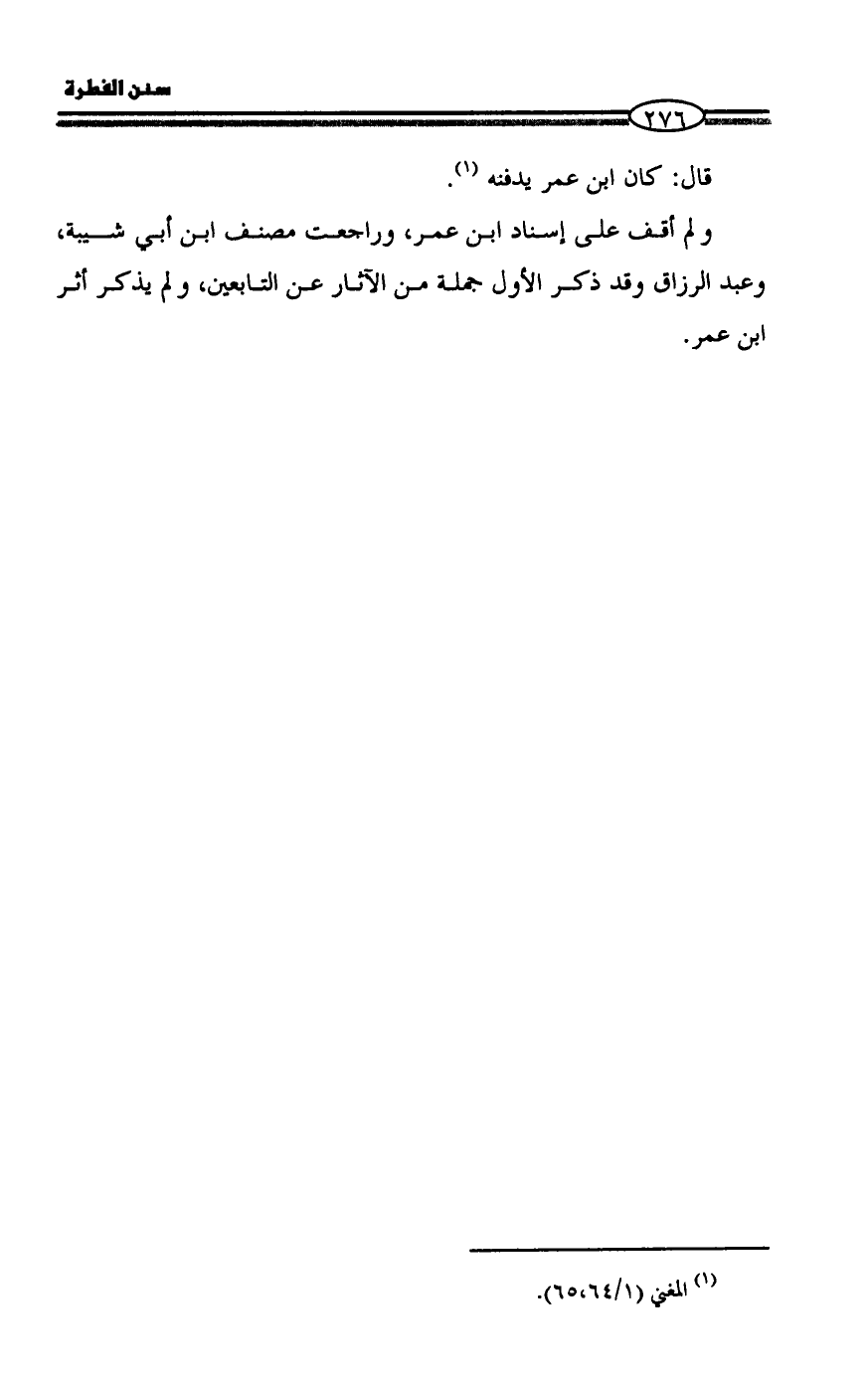 ولم أقف على إسناد ابن عمر، وراجعت مصنف ابن أبي شيبة، وعبد الرزاق وقد ذكر الأول جملة من الآثار عن التابعين، ولم يذكر أثر ابن عمر.