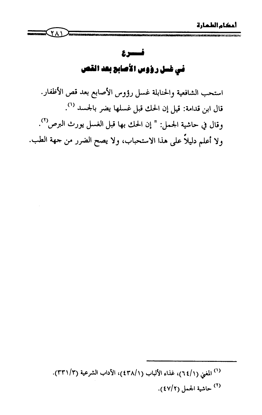 استحب الشافعية والحنابلة غسل رؤوس الأصابع بعد قص الأظفار