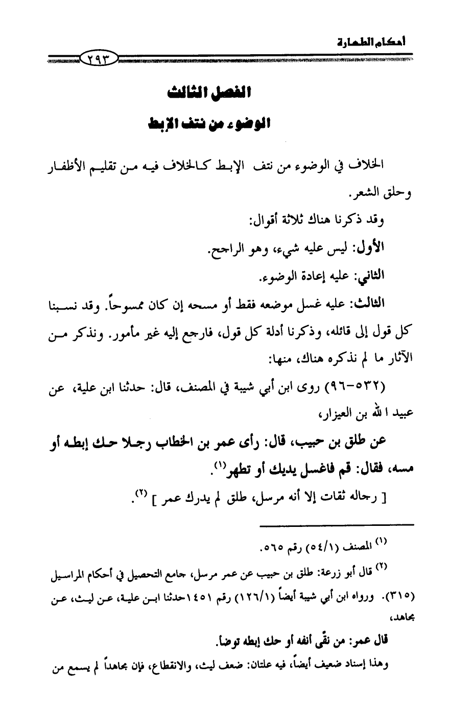 (¬2) قال أبو زرعة: طلق بن حبيب عن عمر مرسل، جامع التحصيل في أحكام المراسيل (315). ورواه ابن أبي شيبة أيضاً (1/ 126) رقم 1451حدثنا ابن علية، عن ليث، عن مجاهد،