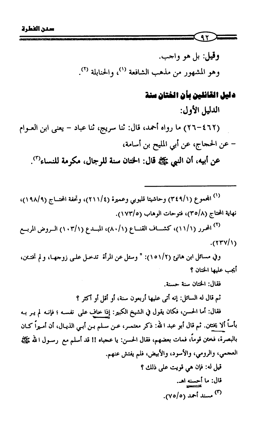 (462 - 26) ما رواه أحمد، قال: ثنا سريج، ثنا عباد - يعنى ابن العوام - عن الحجاج، عن أبي المليح بن أسامة،