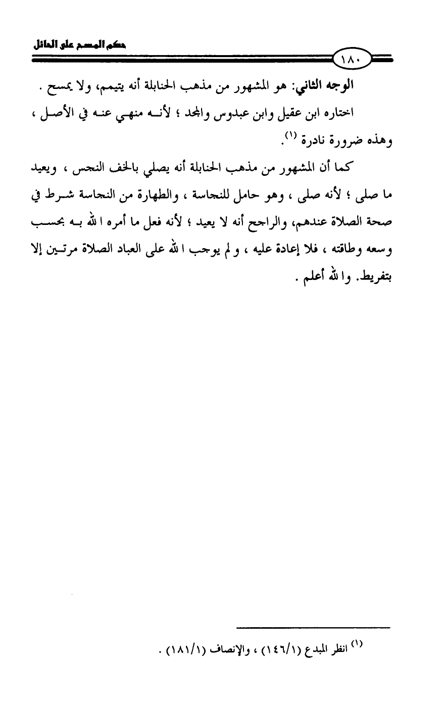 (¬1) انظر المبدع (1/ 146)، والإنصاف (1/ 181).