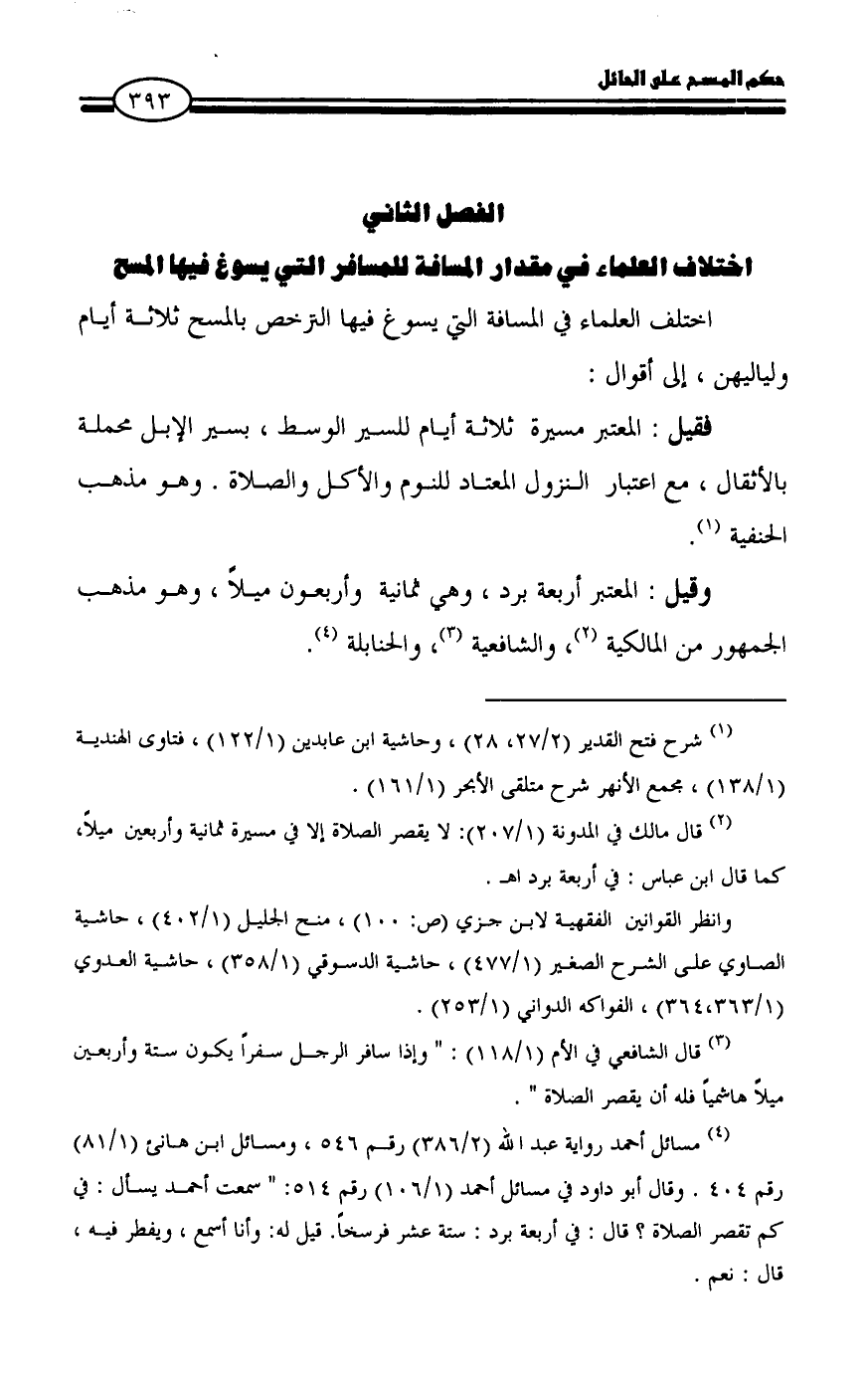 اختلاف العلماء في مقدار المسافة للمسافر التي يسوغ فيها المسح