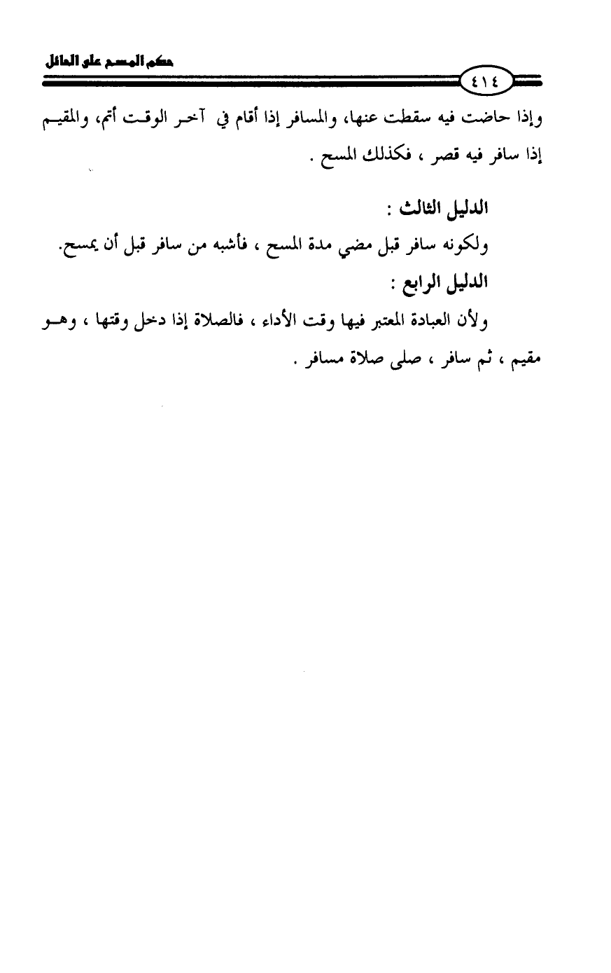 ولكونه سافر قبل مضي مدة المسح، فأشبه من سافر قبل أن يمسح.