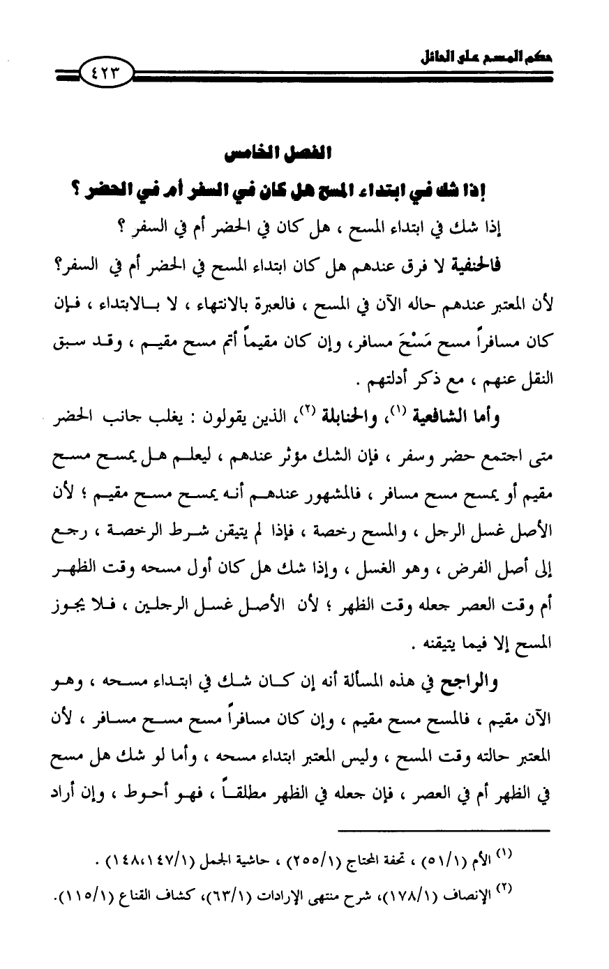 (¬2) الإنصاف (1/ 178)، شرح منتهى الإرادات (1/ 63)، كشاف القناع (1/ 115).