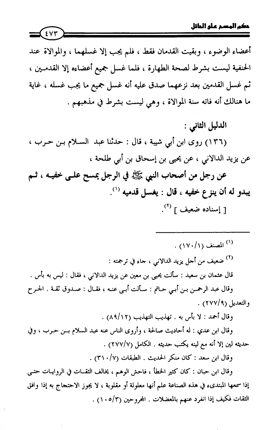 (136) روى ابن أبي شيبة، قال: حدثنا عبد السلام بن حرب، عن يزيد الدالاني، عن يحيى بن إسحاق بن أبي طلحة،