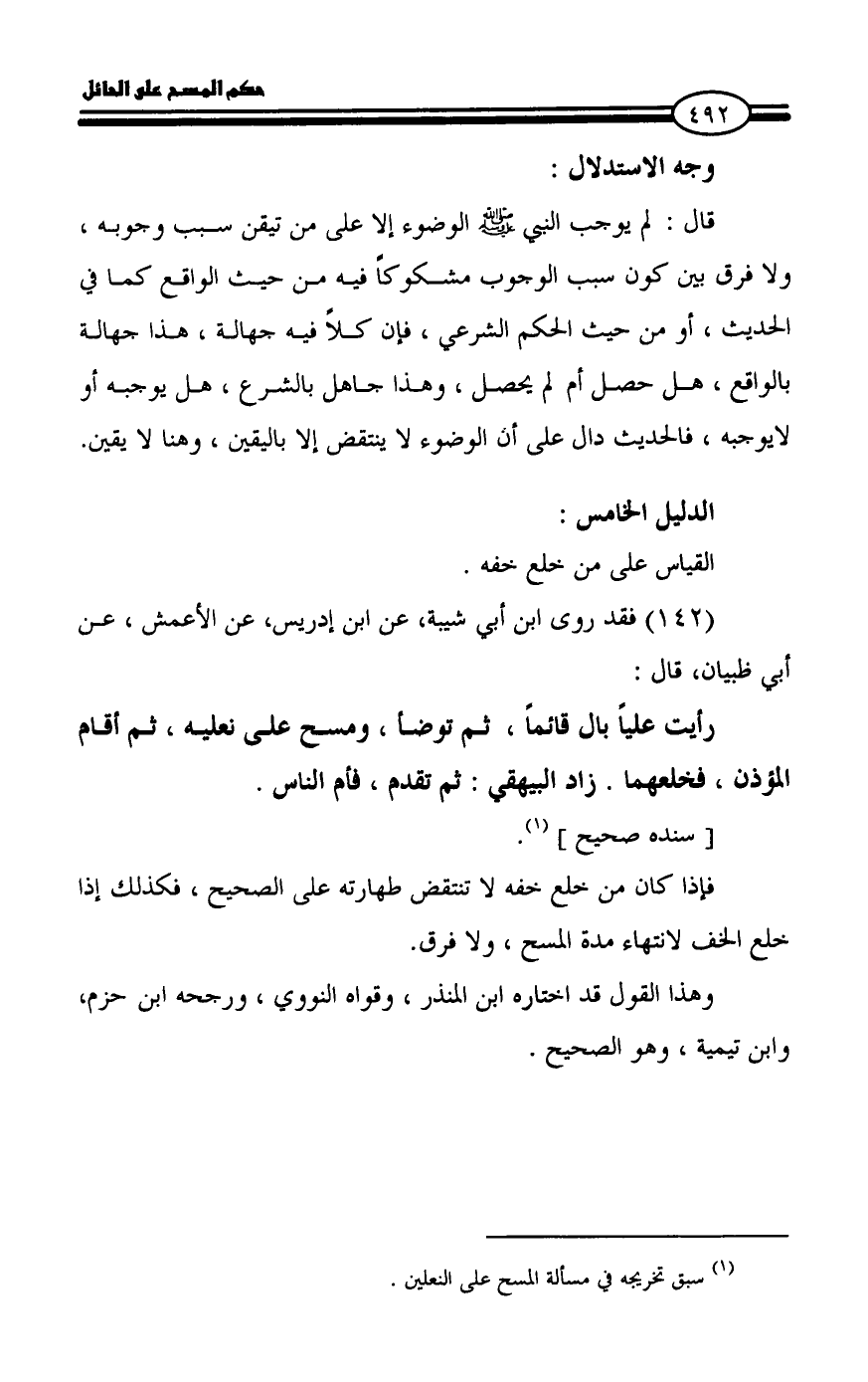 القياس على من خلع خفه.