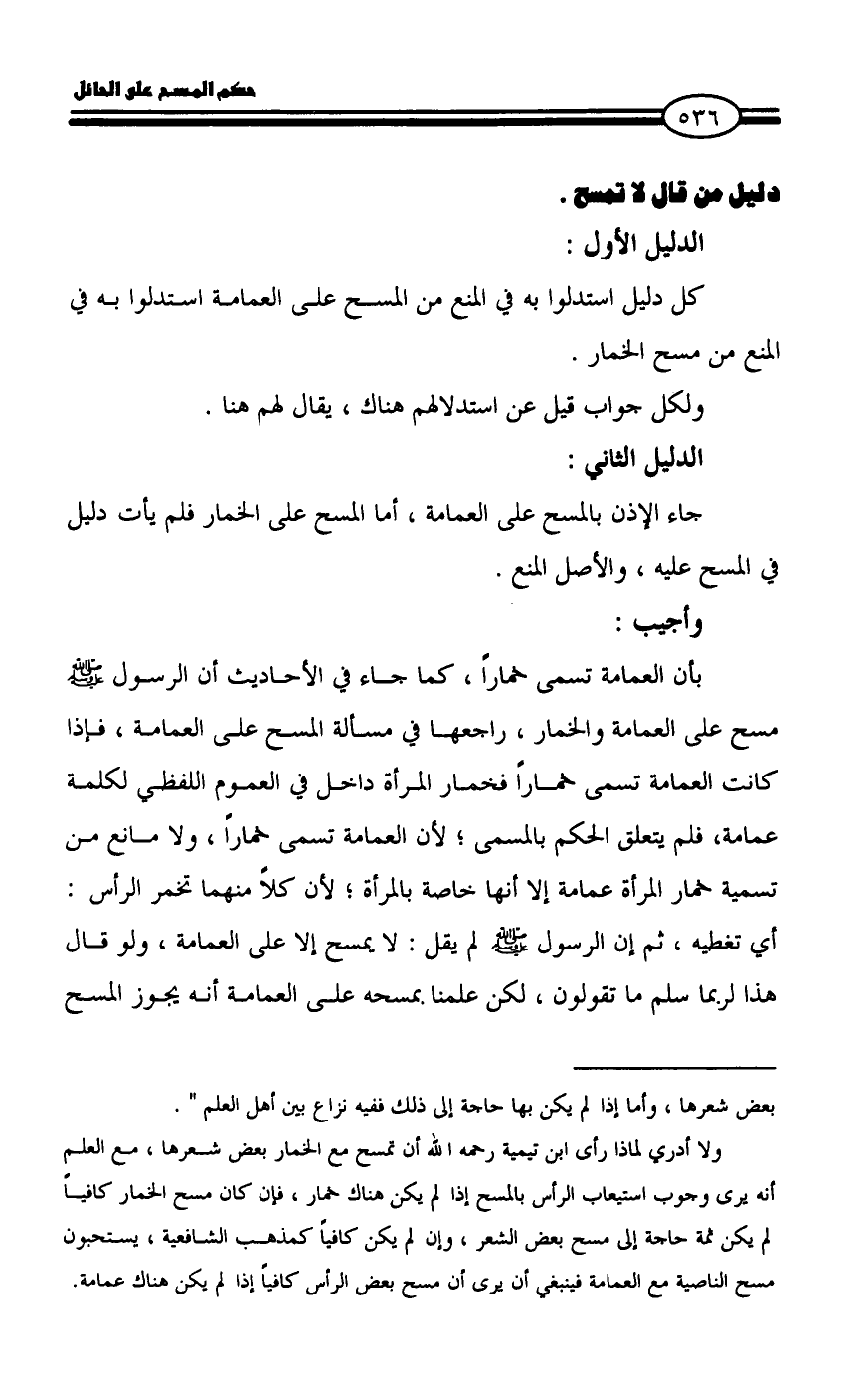 كل دليل استدلوا به في المنع من المسح على العمامة استدلوا به في المنع من مسح الخمار.