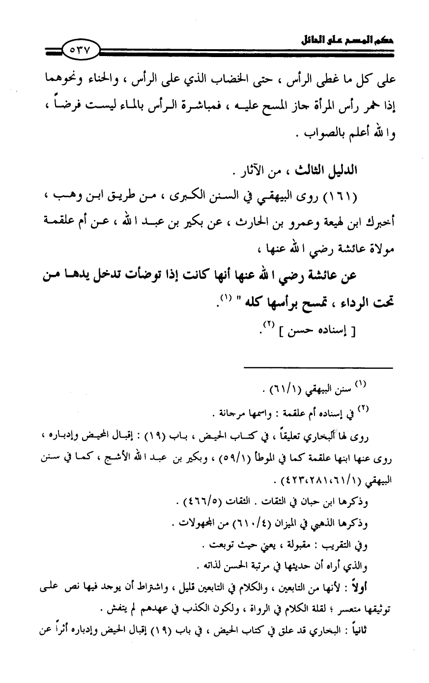 (161) روى البيهقي في السنن الكبرى، من طريق ابن وهب، أخبرك ابن لهيعة وعمرو بن الحارث، عن بكير بن عبد الله، عن أم علقمة مولاة عائشة رضي الله عنها،