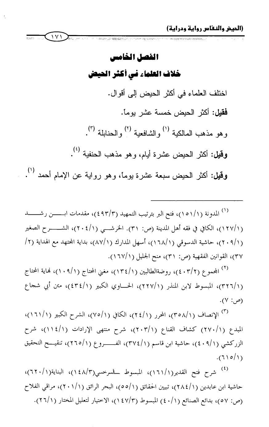 الفصل الخامس: خلاف العلماء في أكثر الحيض