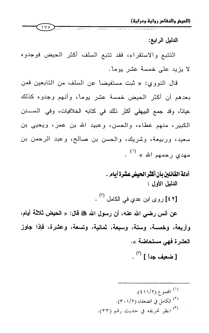 أدلة القائلين بأن أكثر الحيض عشرة أيام.