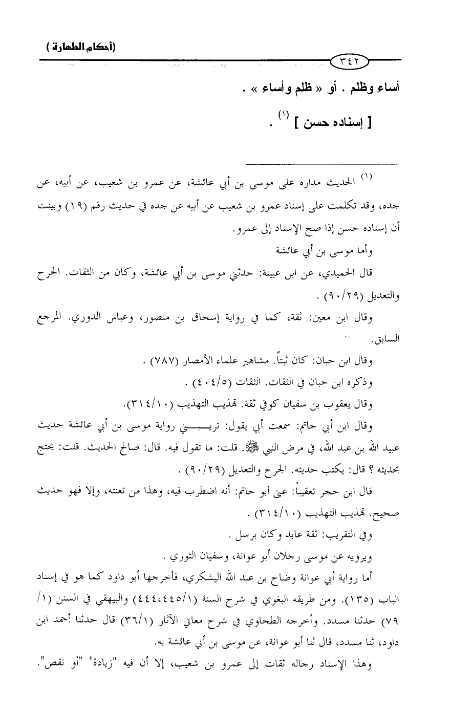 وهذا الإسناد رجاله ثقات إلى عمرو بن شعيب، إلا أن فيه "زيادة" "أو نقص".