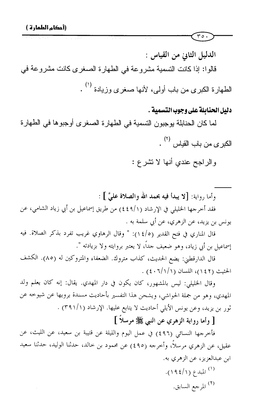 قالوا: إذا كانت التسمية مشروعة في الطهارة الصغرى كانت مشروعة في الطهارة الكبرى من باب أولى، لأنها صغرى وزيادة (¬1).