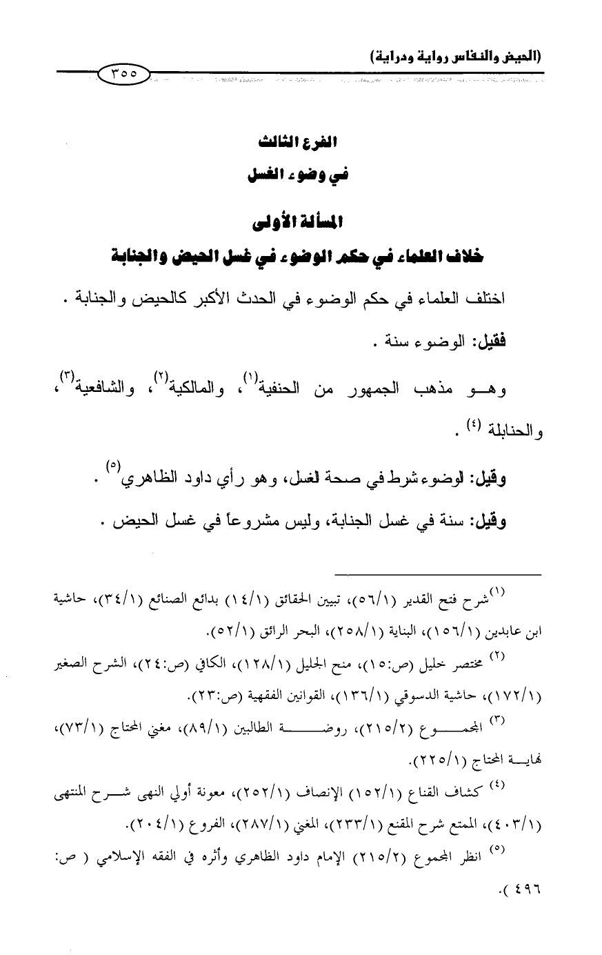 (¬4) كشاف القناع (1/ 152) الإنصاف (1/ 252)، معونة أولي النهى شرح المنتهى (1/ 403)، الممتع شرح المقنع (1/ 233)، المغني (1/ 287)، الفروع (1/ 204).