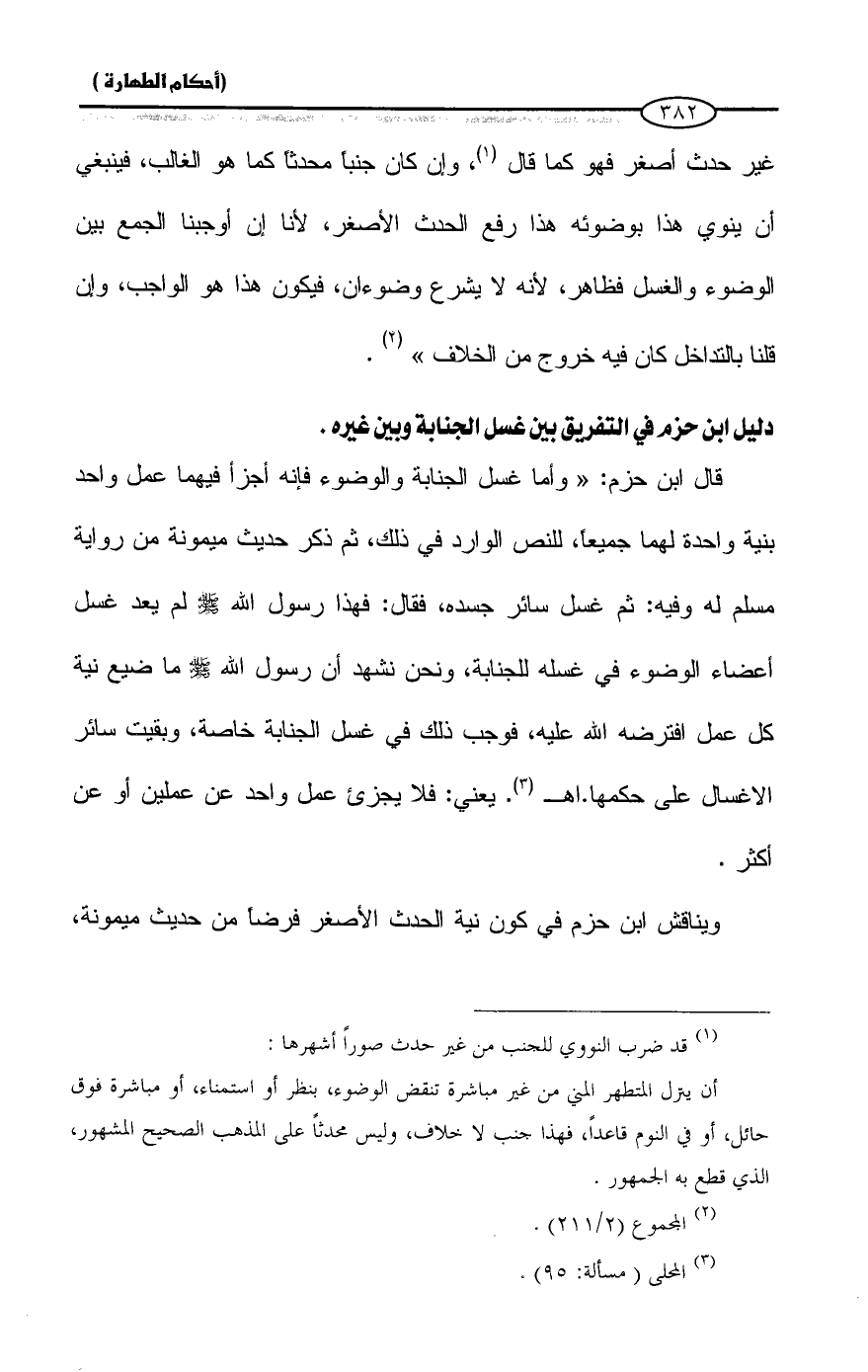 ويناقش ابن حزم فى كون نية الحدث الأصغر فرضاً من حديث ميمونة،