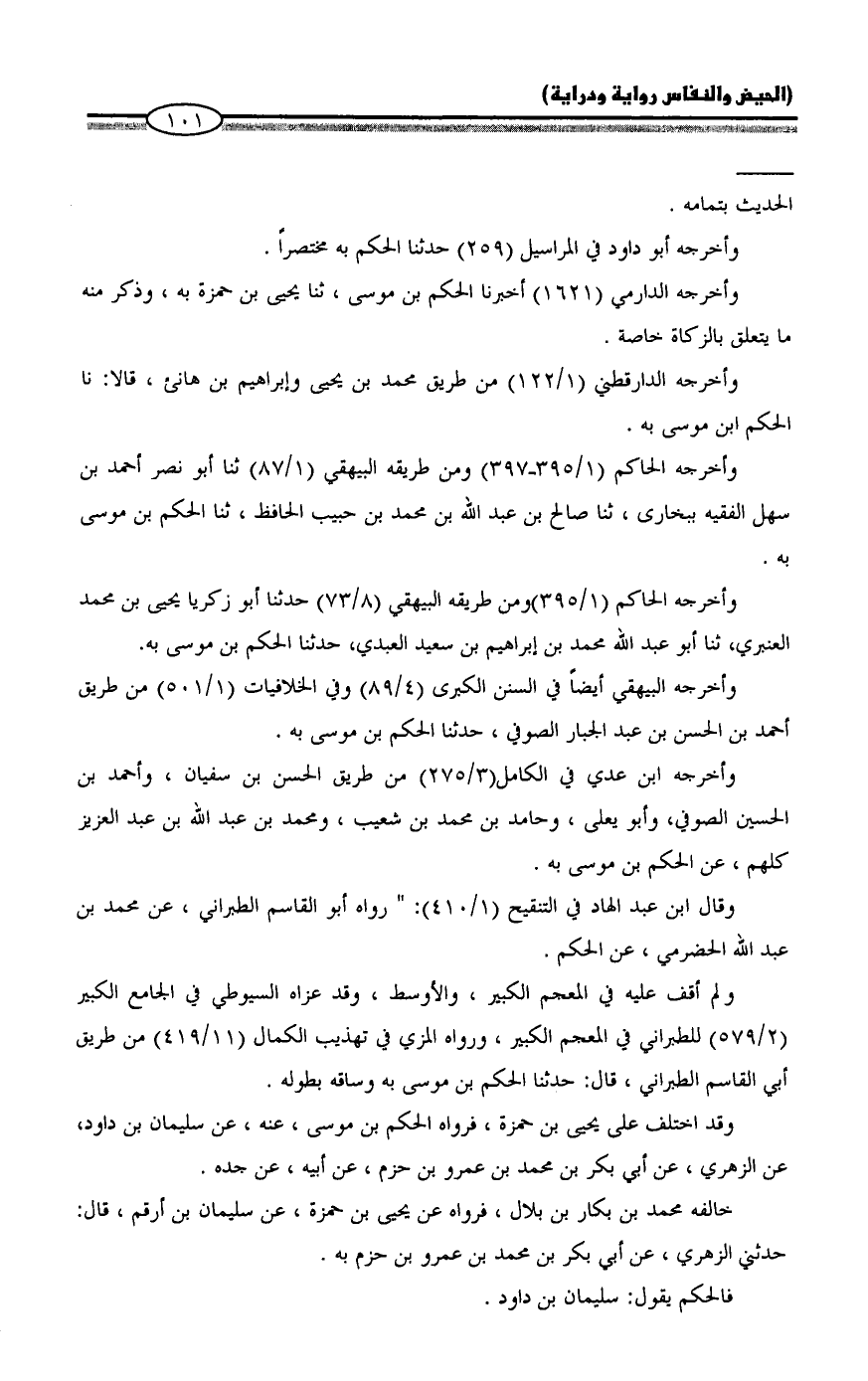 وأخرجه الدارمي (1621) أخبرنا الحكم بن موسى، ثنا يحيى بن حمزة به، وذكر منه ما يتعلق بالزكاة خاصة.