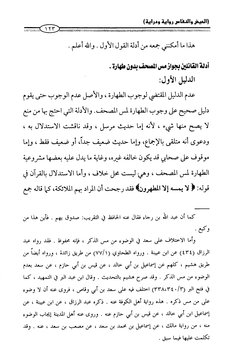 أدلة القائلين بجواز مس المصحف بدون طهارة.