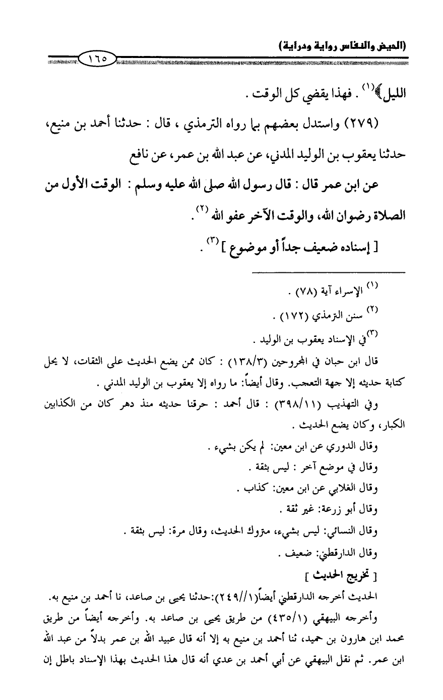 (279) واستدل بعضهم بما رواه الترمذي، قال: حدثنا أحمد بن منيع، حدثنا يعقوب بن الوليد المدني، عن عبد الله بن عمر، عن نافع
