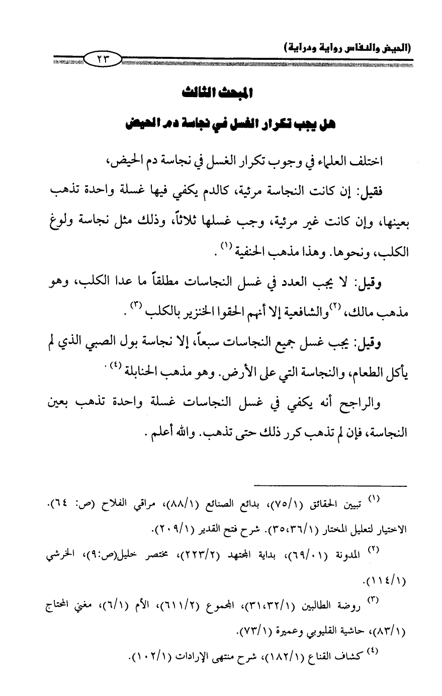 المبحث الثالث: هل يجب تكرار الغسل في نجاسة دم الحيض