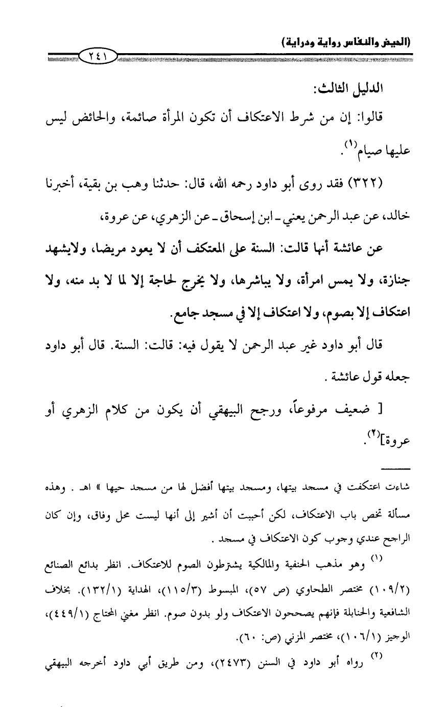 (322) فقد روى أبو داود رحمه الله، قال: حدثنا وهب بن بقية، أخبرنا خالد، عن عبد الرحمن يعني - ابن إسحاق - عن الزهري، عن عروة،