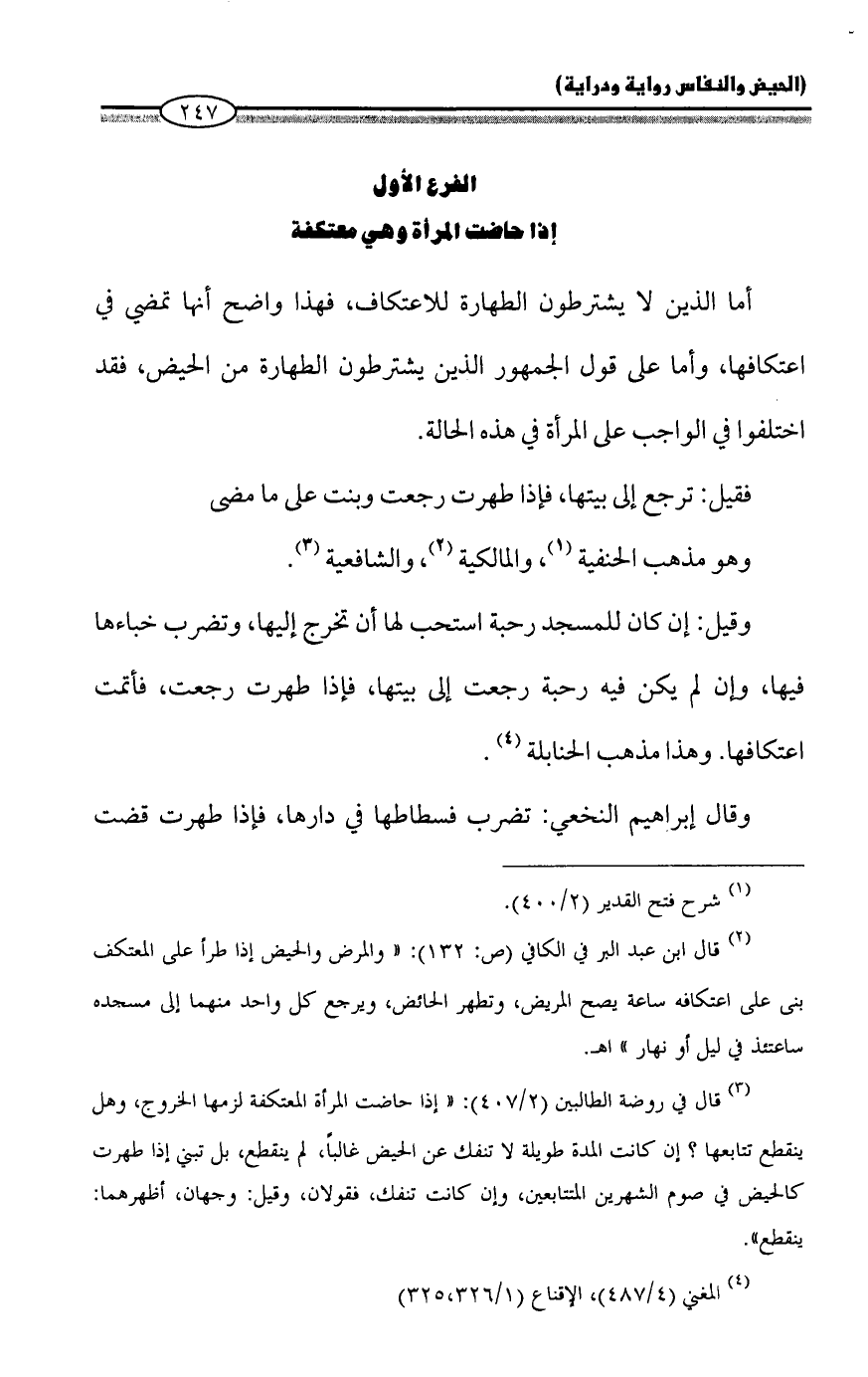الفرع الأول: إذا حاضت المرأة وهي معتكفة (*)