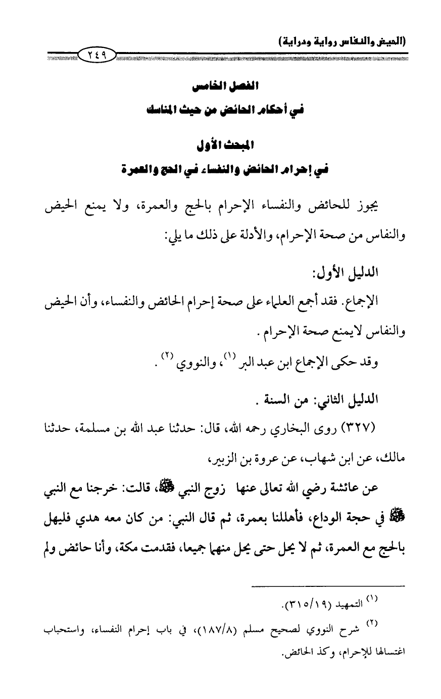 (¬2) شرح النووي لصحيح مسلم (8/ 187)، في باب إحرام النفساء، واستحباب اغتسالها للإحرام، وكذ الحائض.