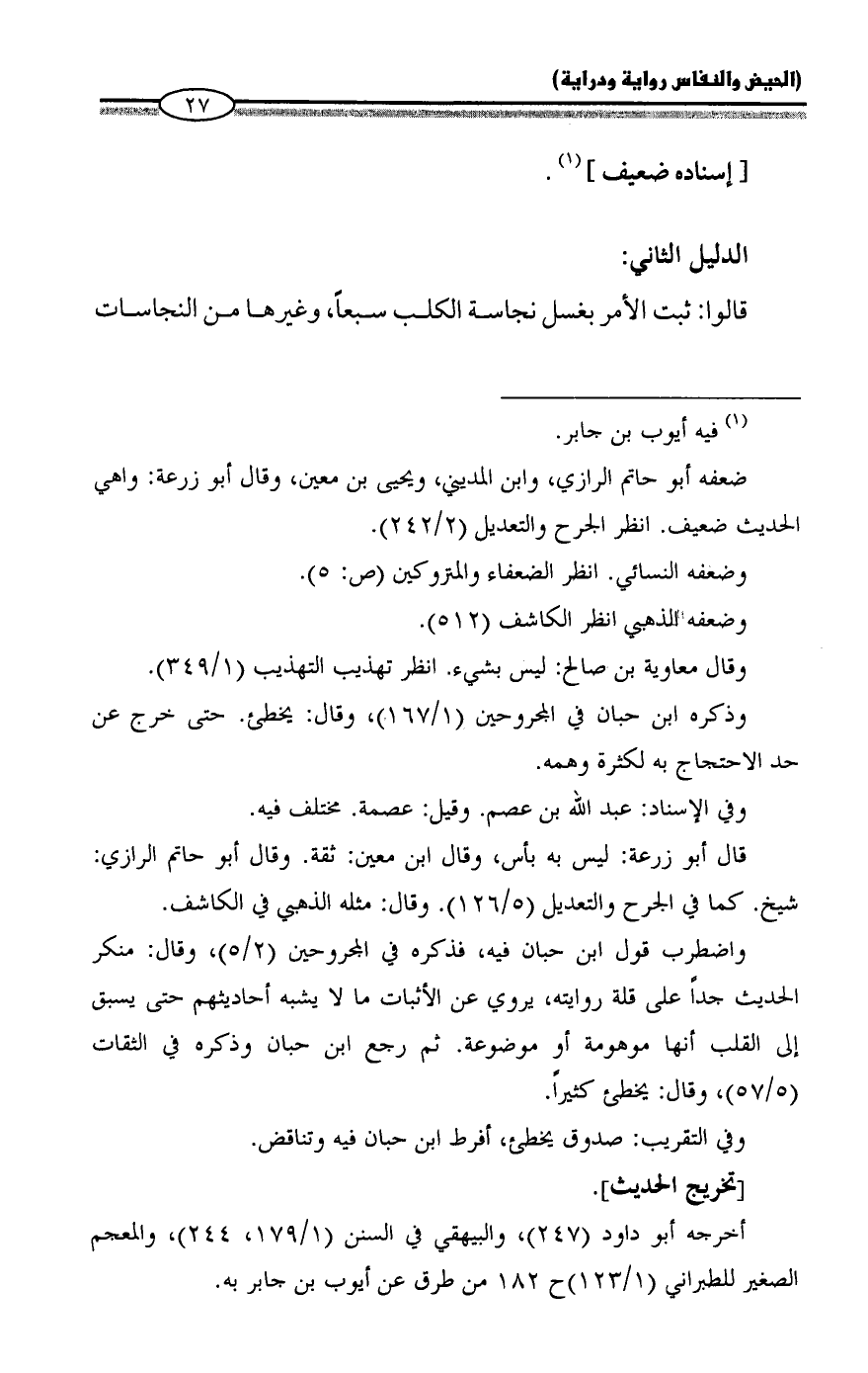 أخرجه أبو داود (247)، والبيهقي في السنن (1/ 179، 244)، والمعجم الصغير للطبراني (1/ 123) ح 182 من طرق عن أيوب بن جابر به.
