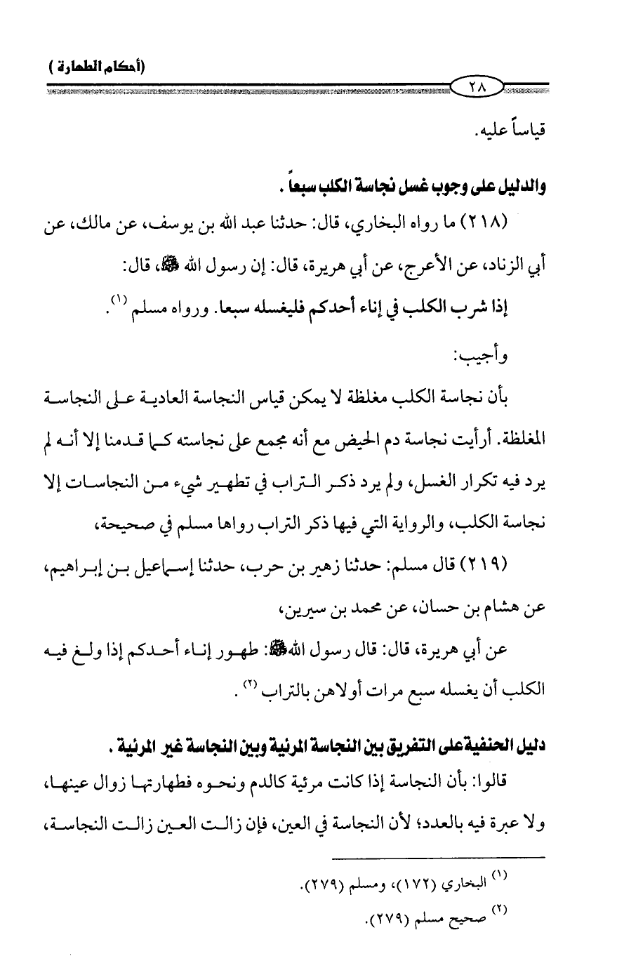 دليل الحنفية على التفريق بين النجاسة المرئية وبين النجاسة غير المرئية.