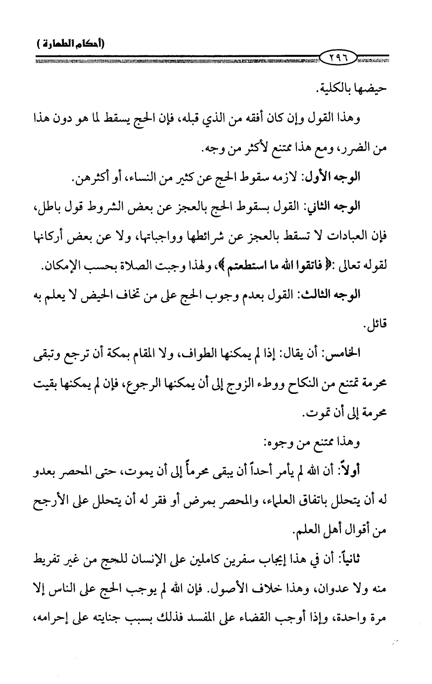 الوجه الأول: لازمه سقوط الحج عن كثير من النساء، أو أكثرهن.