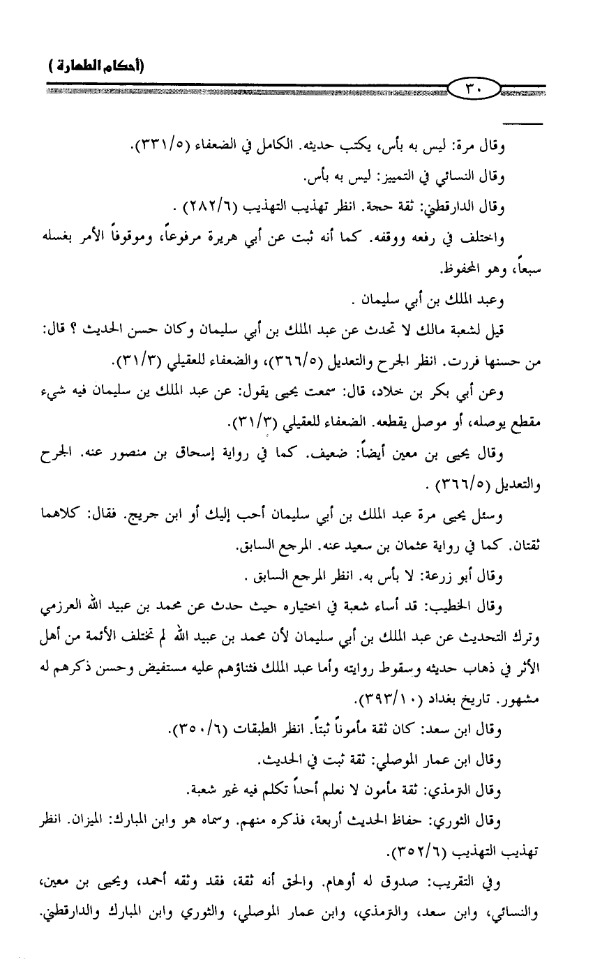 وسئل يحيى مرة عبد الملك بن أبي سليمان أحب إليك أو ابن جريج. فقال: كلاهما ثقتان. كما في رواية عثمان بن سعيد عنه. المرجع السابق.