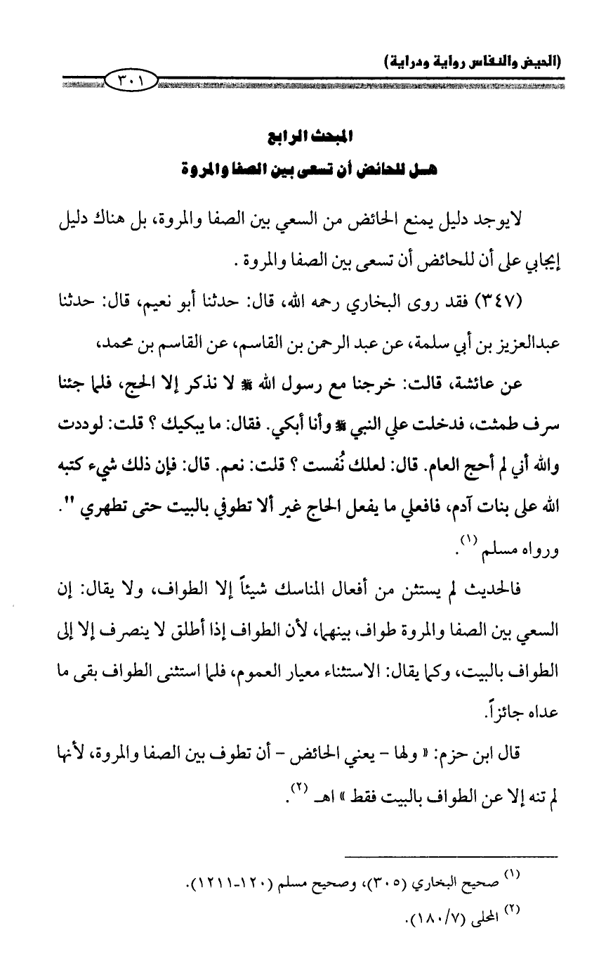 المبحث الرابع: هل للحائض أن تسعى بين الصفا والمروة