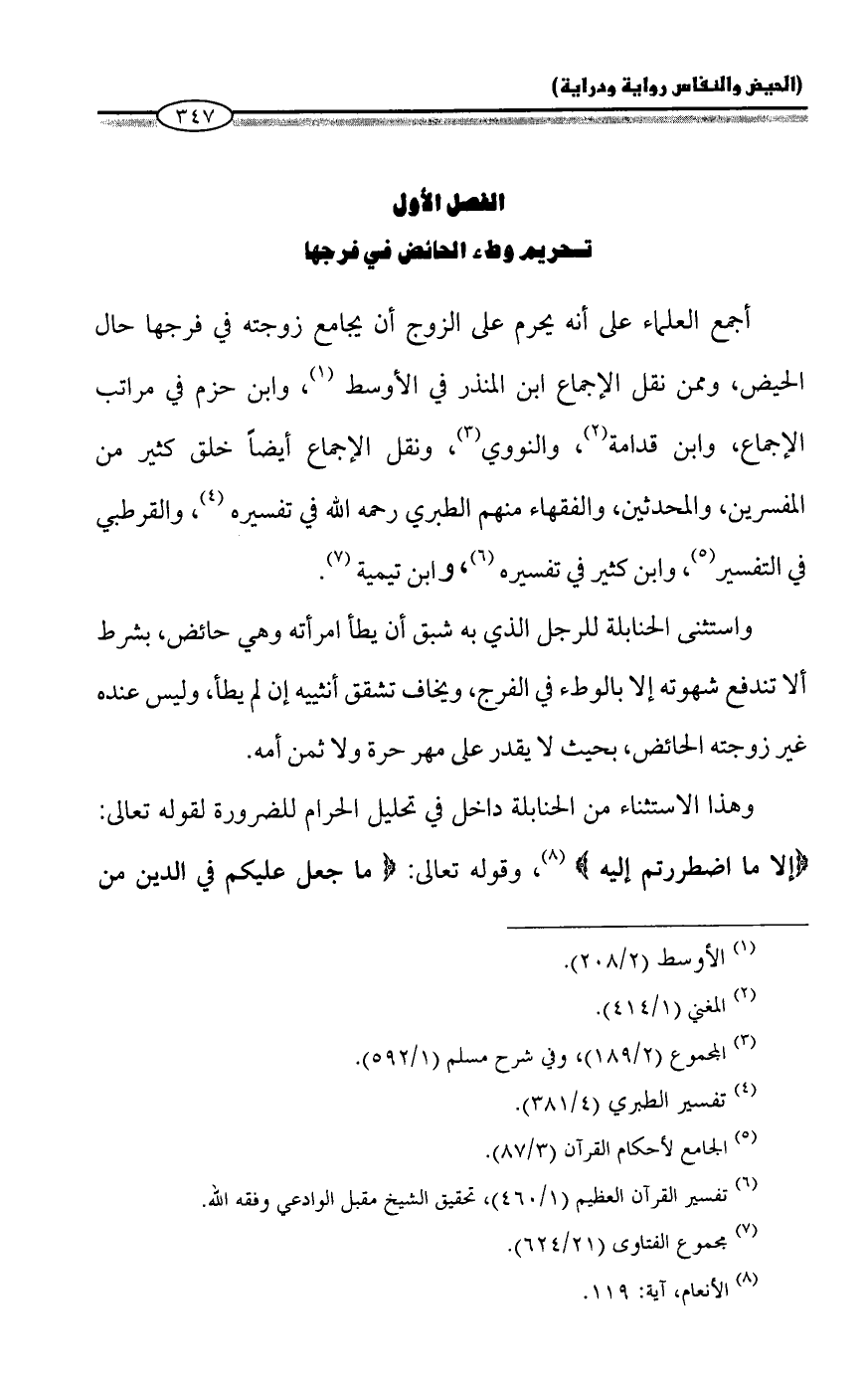 الفصل الأول: تحريم وطء الحائض في فرجها