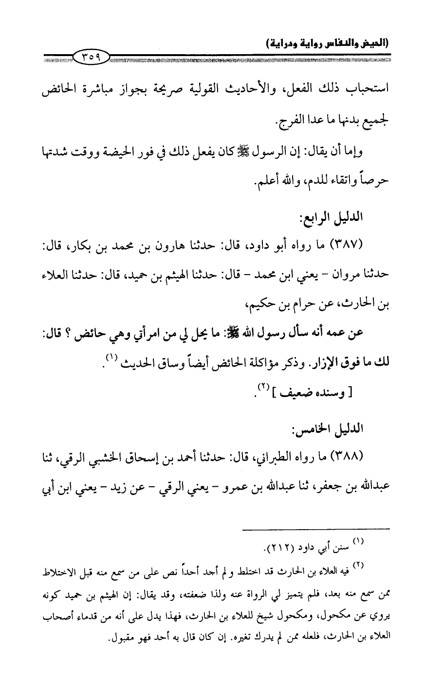 (387) ما رواه أبو داود، قال: حدثنا هارون بن محمَّد بن بكار، قال: حدثنا مروان - يعني ابن محمَّد - قال: حدثنا الهيثم بن حميد، قال: حدثنا العلاء بن الحارث، عن حرام بن حكيم،