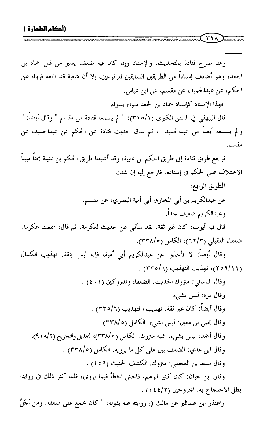 فرجع طريق قتادة إلى طريق الحكم بن عتيبة، وقد أشبعنا طريق الحكم بن عتيبة بحثاً مبيناً الاختلاف على الحكم في إسناده، فارجع إليه إن شئت.