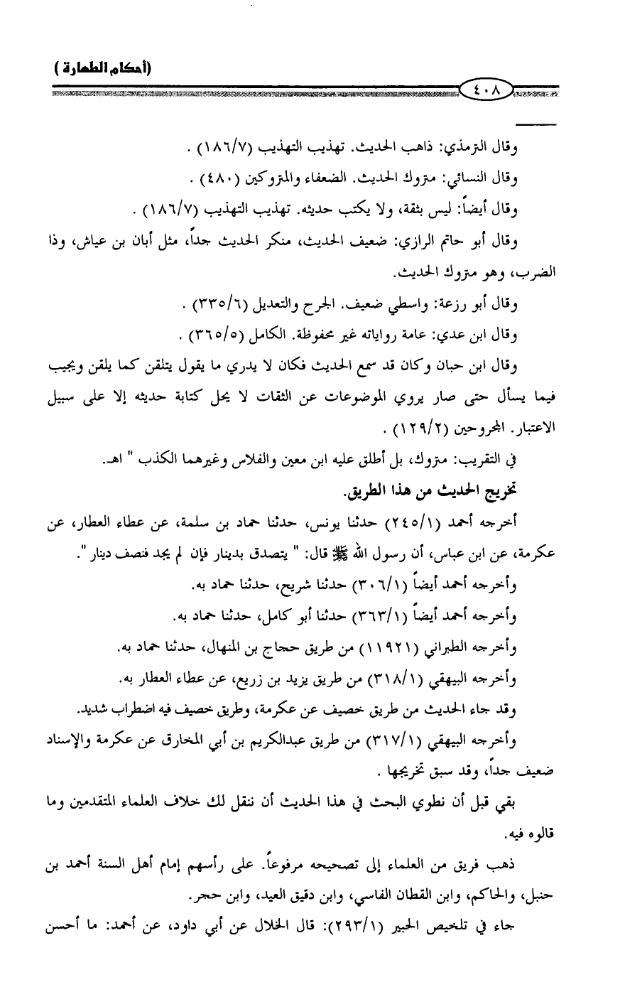 جاء في تلخيص الحبير (1/ 293): قال الخلال عن أبي داود، عن أحمد: ما أحسن