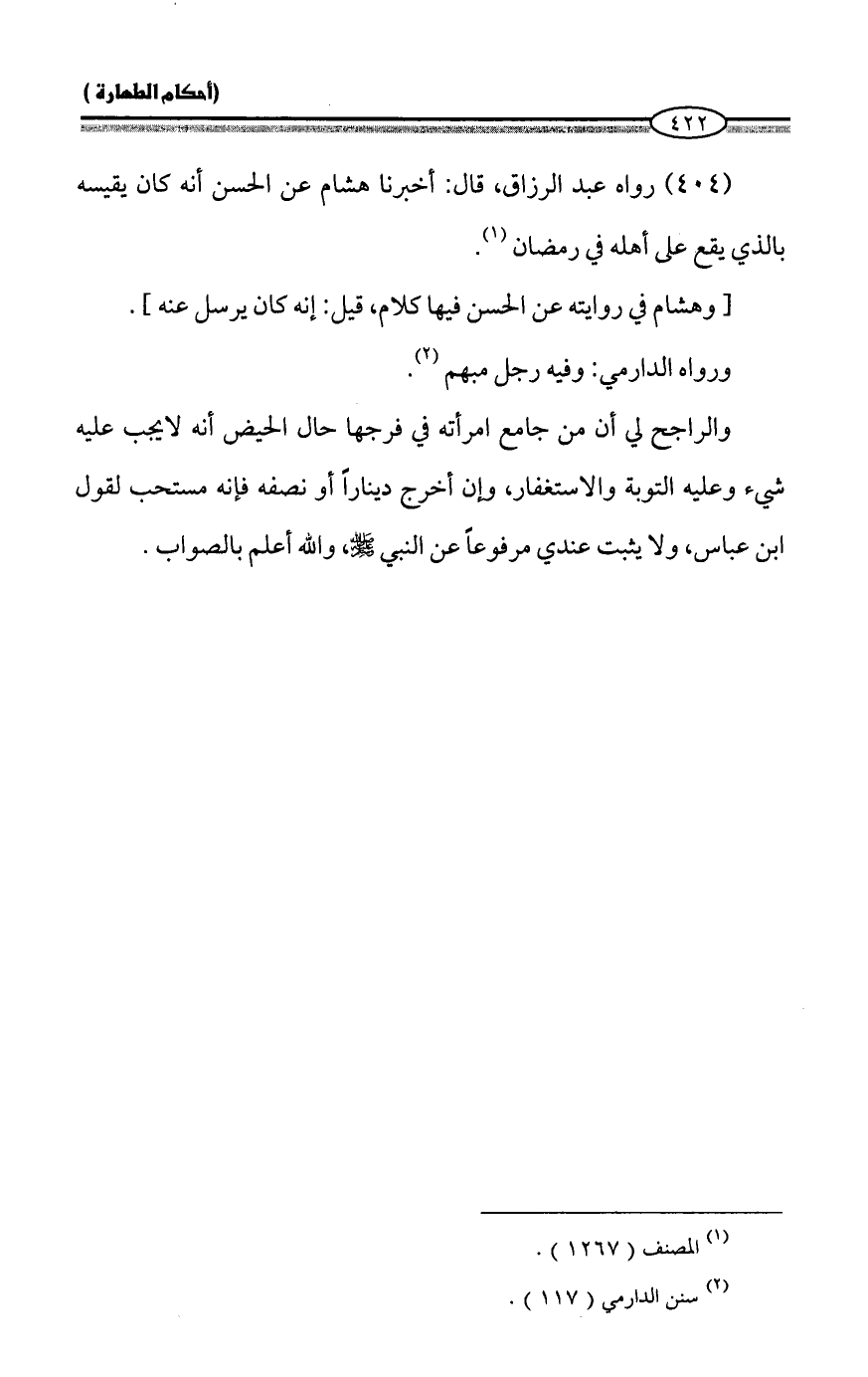 (404) رواه عبد الرزاق، قال: أخبرنا هشام عن الحسن أنه كان يقيسه بالذي يقع على أهله في رمضان (¬1).