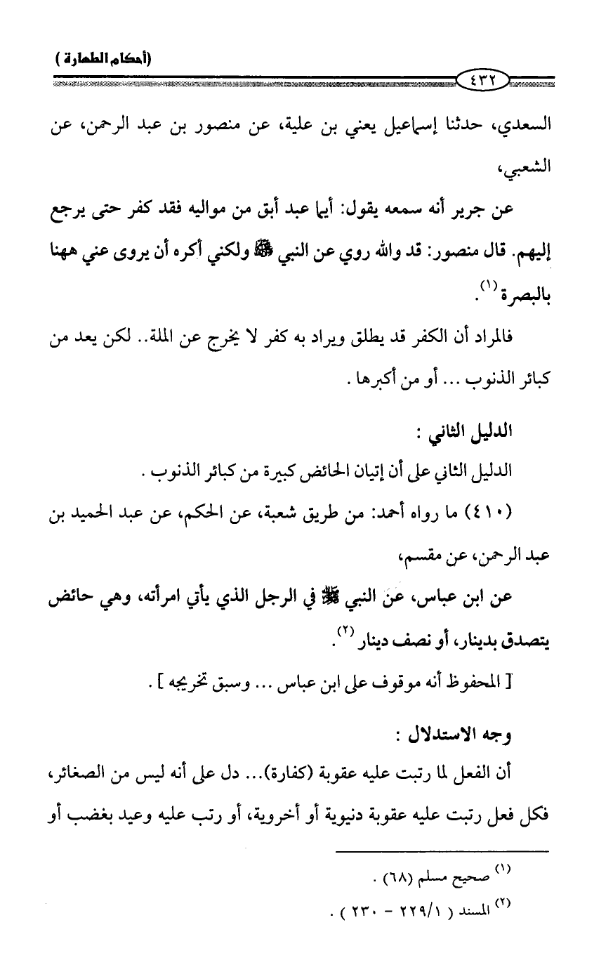 الدليل الثاني على أن إتيان الحائض كبيرة من كبائر الذنوب.