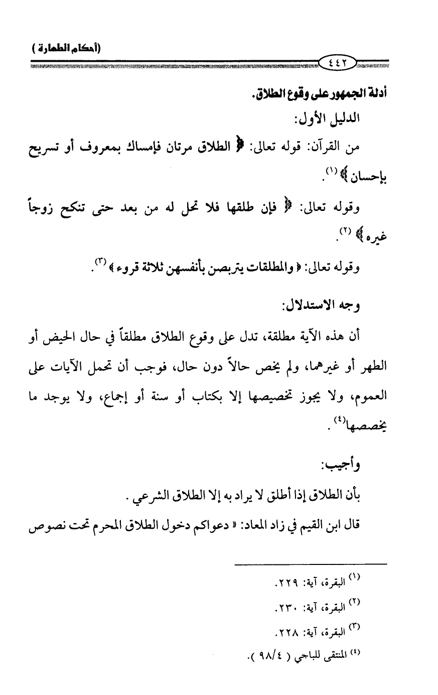 من القرآن: قوله تعالى: {الطَّلَاقُ مَرَّتَانِ فَإِمْسَاكٌ بِمَعْرُوفٍ أَوْ تَسْرِيحٌ بِإِحْسَانٍ} (¬1).