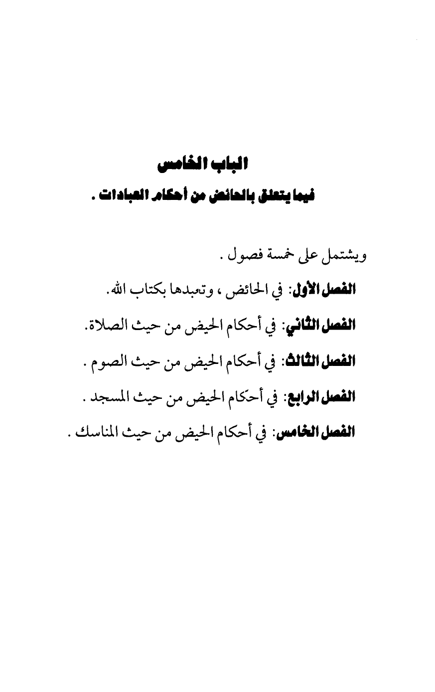 الباب الخامس: فيما يتعلق بالحائض من أحكام العبادات.