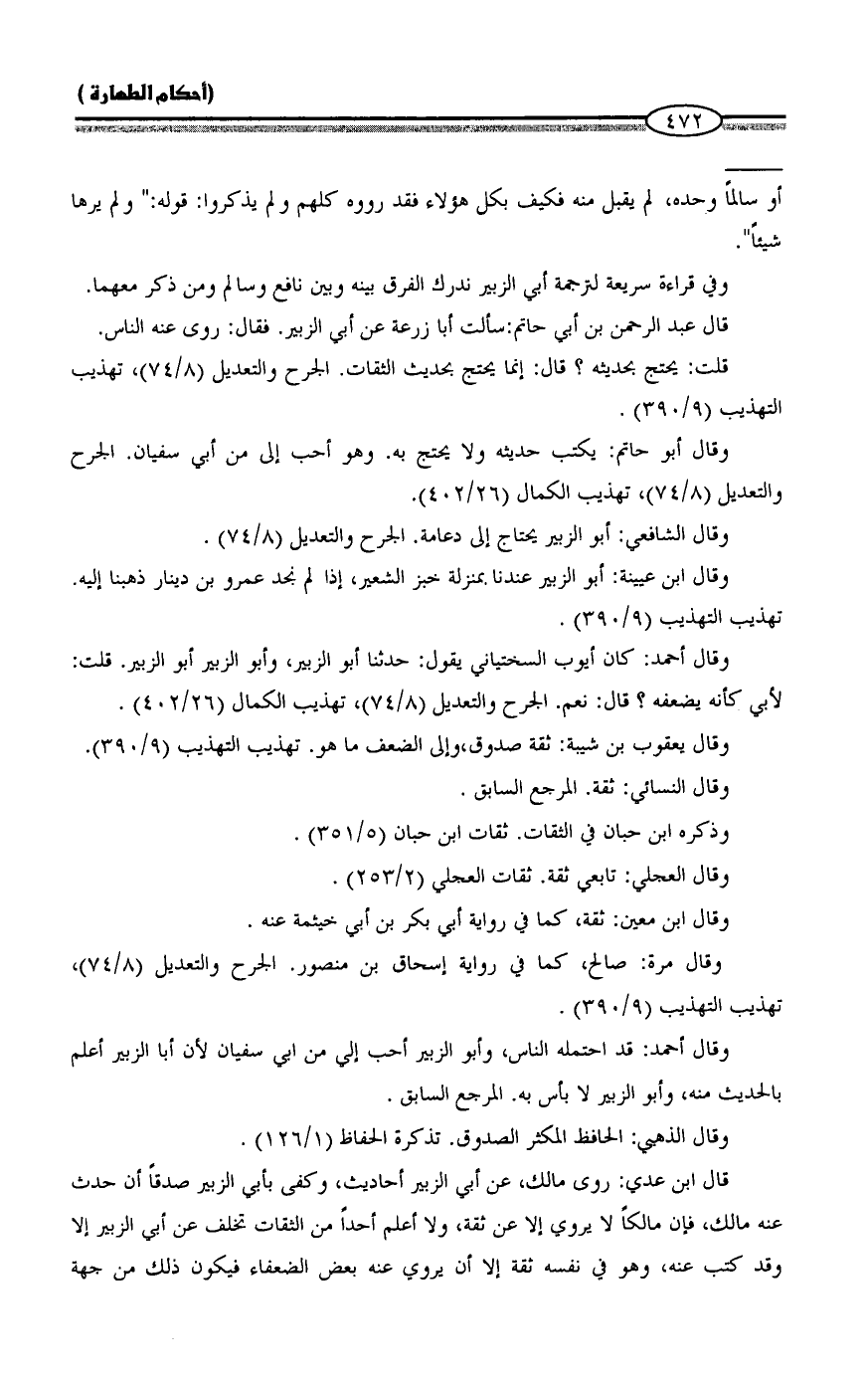 وقال أحمد: قد احتمله الناس، وأبو الزبير أحب إلي من أبي سفيان لأن أبا الزبير أعلم بالحديث منه، وأبو الزبير لا بأس به. المرجع السابق.