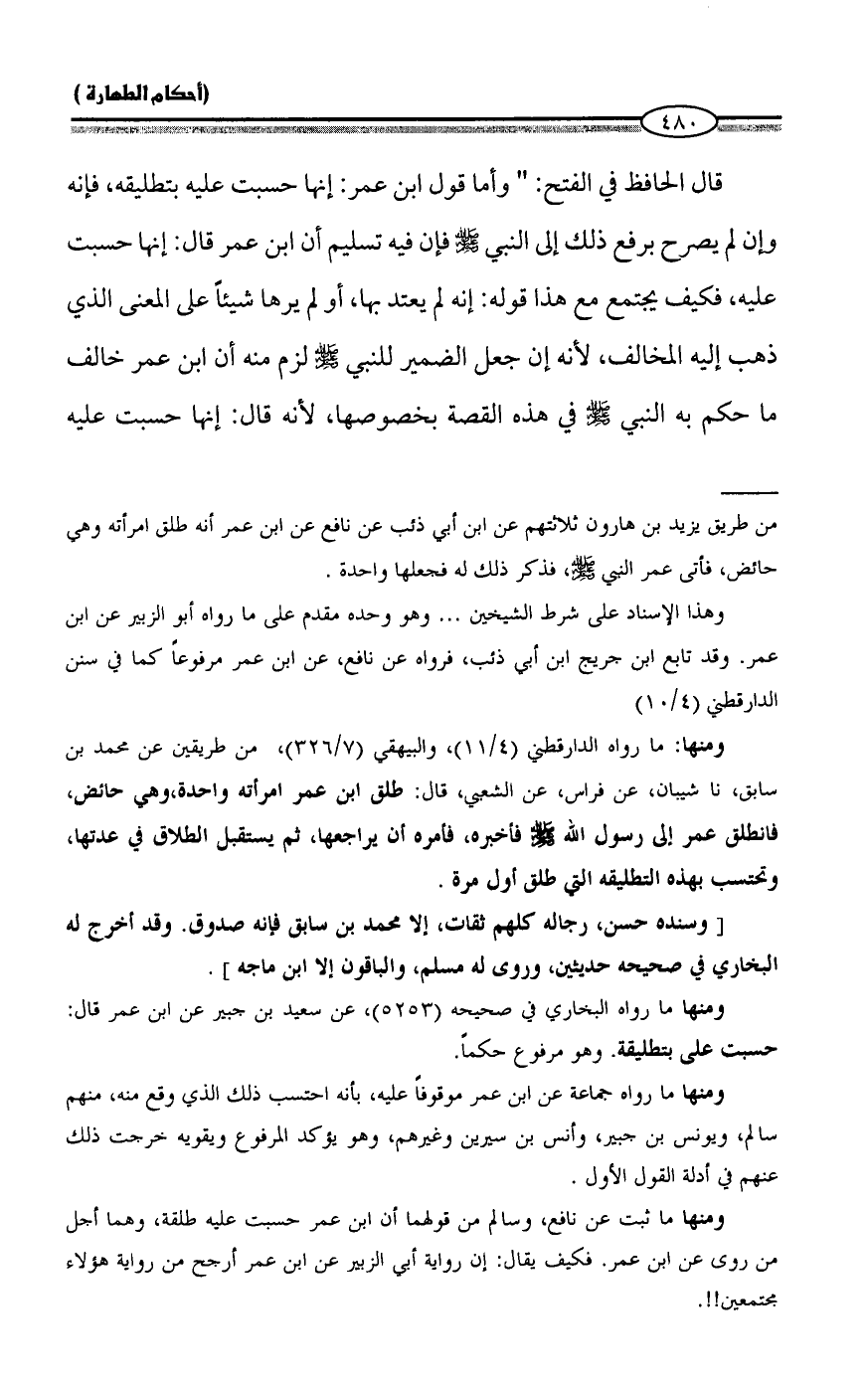 ومنها ما ثبت عن نافع، وسالم من قولهما أن ابن عمر حسبت عليه طلقة، وهما أجل من روى عن ابن عمر. فكيف يقال: إن رواية أبي الزبير عن ابن عمر أرجح من رواية هؤلاء مجتمعين!!.