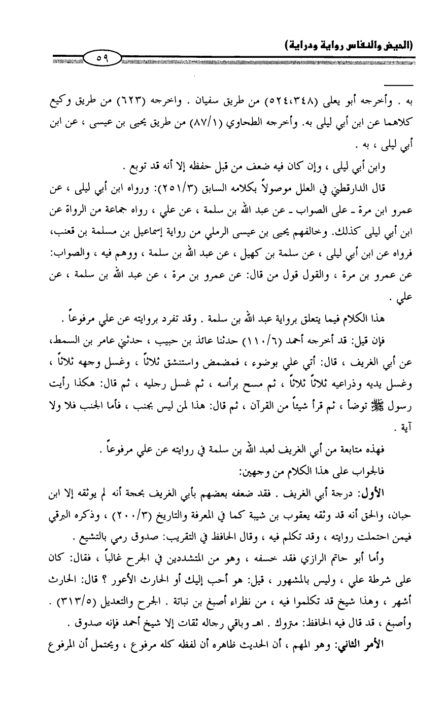 هذا الكلام فيما يتعلق برواية عبد الله بن سلمة. وقد تفرد بروايته عن علي مرفوعاً.