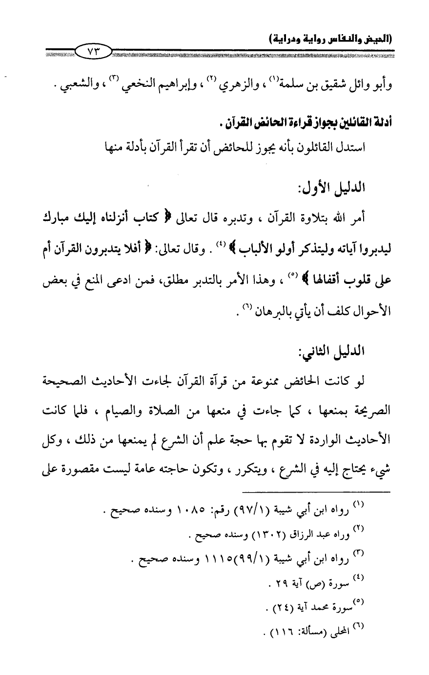 أدلة القائلين بجواز قراءة الحائض القرآن.