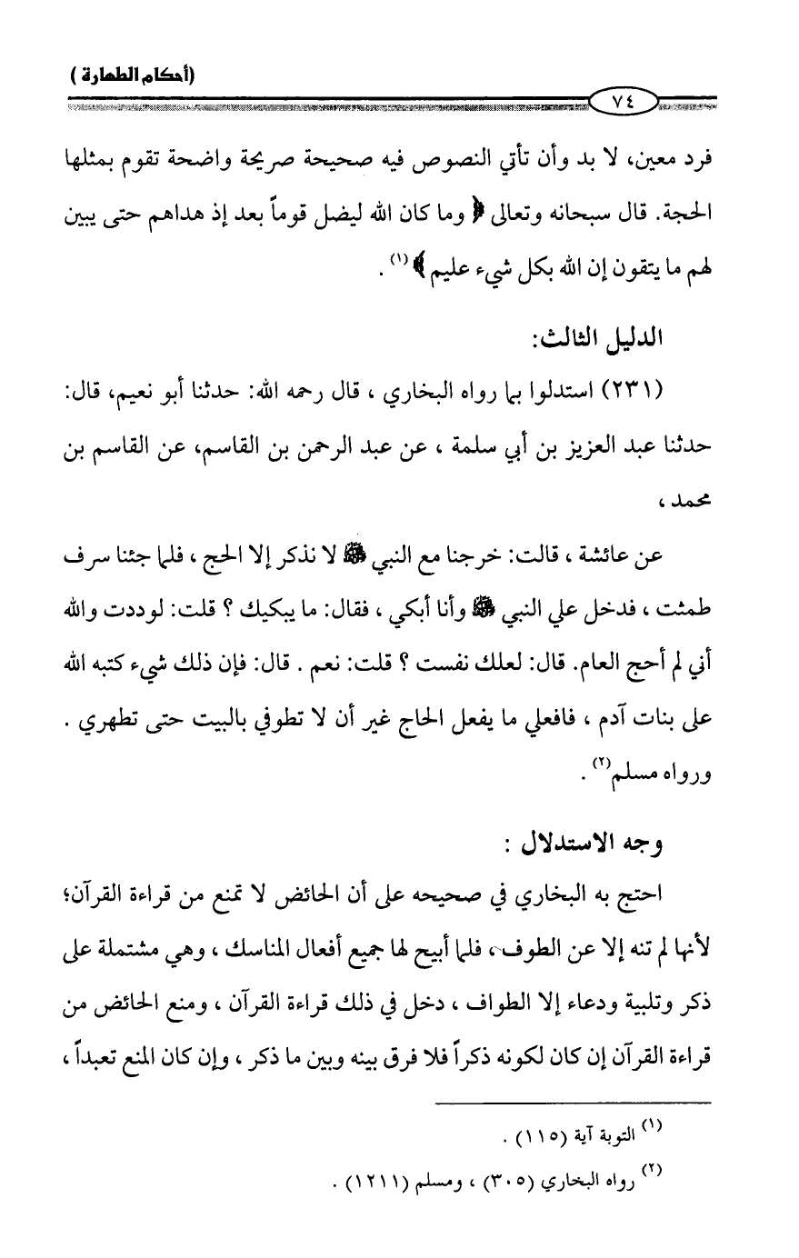 (231) استدلوا بما رواه البخاري، قال رحمه الله: حدثنا أبو نعيم، قال: حدثنا عبد العزيز بن أبي سلمة، عن عبد الرحمن بن القاسم، عن القاسم بن محمد،