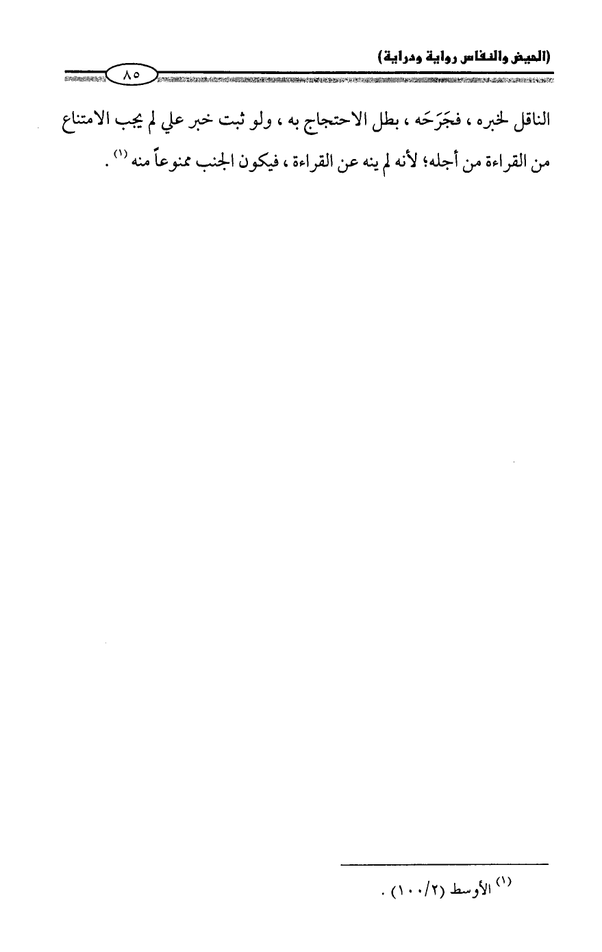 الناقل لخبره، فجَرَحَه، بطل الاحتجاج به، ولو ثبت خبر علي لم يجب الامتناع من القراءة من أجله؛ لأنه لم ينه عن القراءة، فيكون الجنب ممنوعاً منه (¬1).