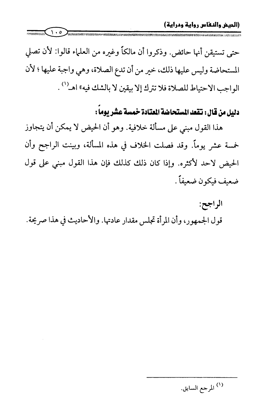 دليل من قال: تقعد المستحاضة المعتادة خمسة عشر يوماً:
