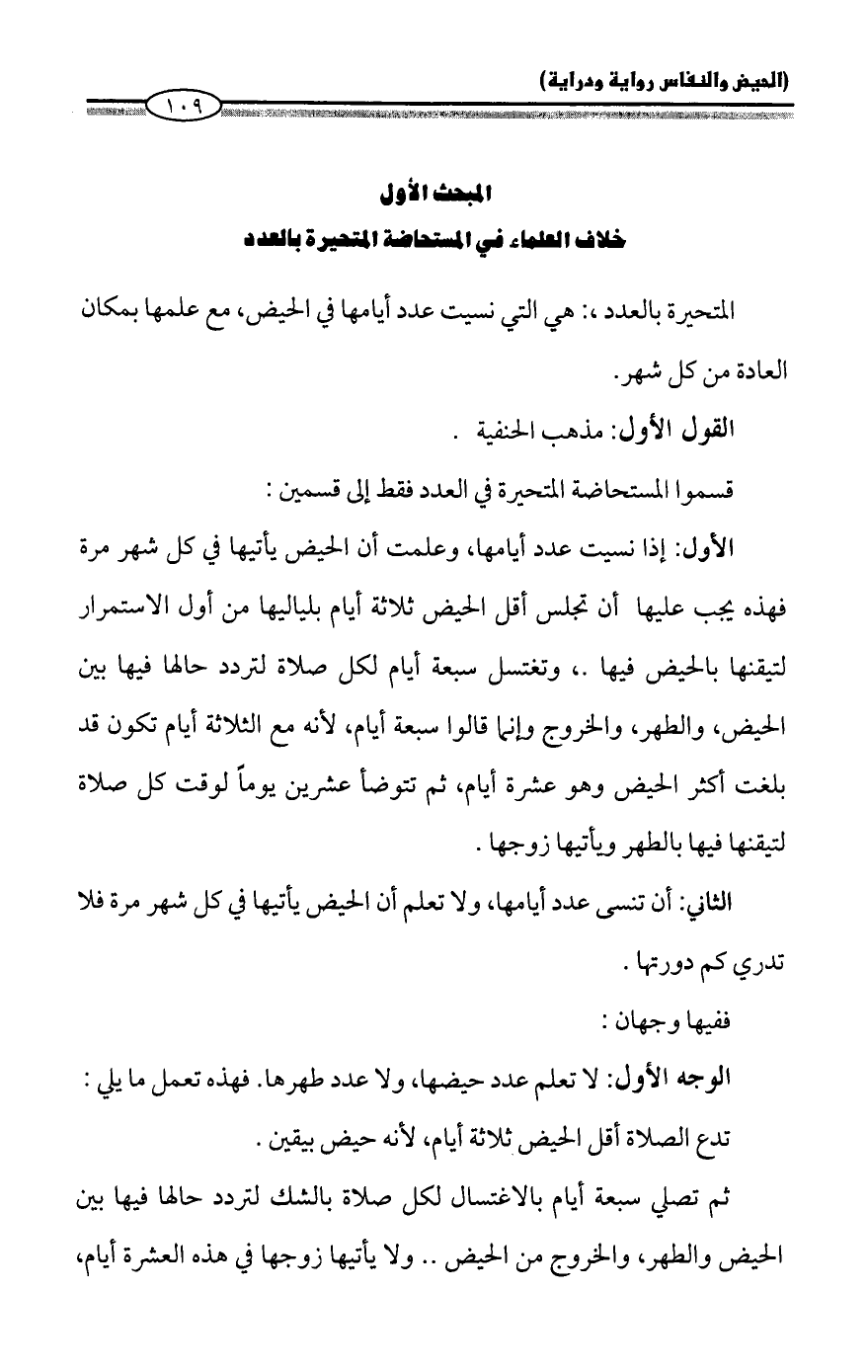 المبحث الأول: خلاف العلماء في المستحاضة المتحيرة بالعدد