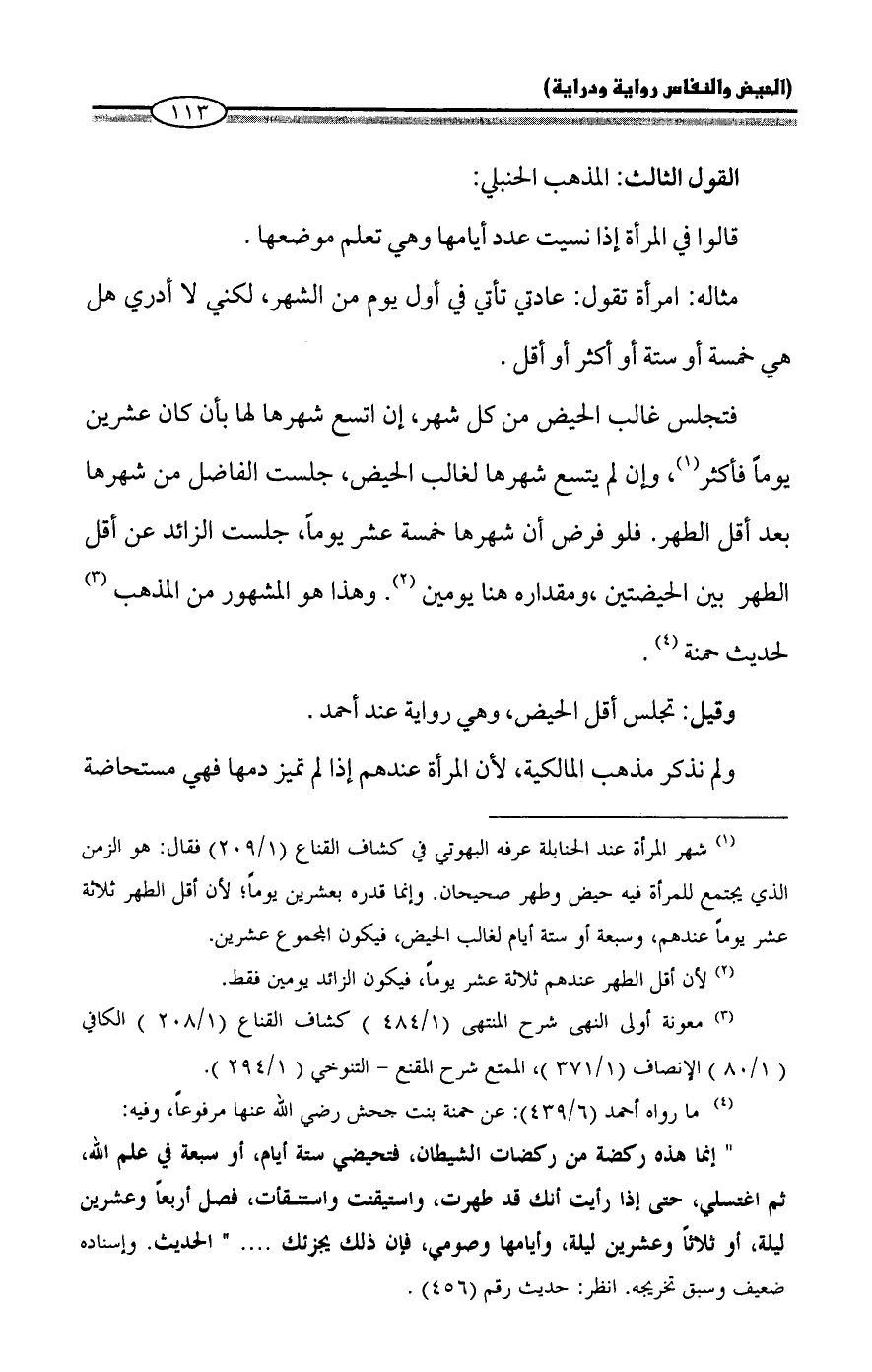 (¬1) شهر المرأة عند الحنابلة عرفه البهوتي في كشاف القناع (1/ 209) فقال: هو الزمن الذي يجتمع للمرأة فيه حيض وطهر صحيحان. وإنما قدره بعشرين يوماً؛ لأن أقل الطهر ثلاثة عشر يوماً عندهم، وسبعة أو ستة أيام لغالب الحيض، فيكون المجموع عشرين.