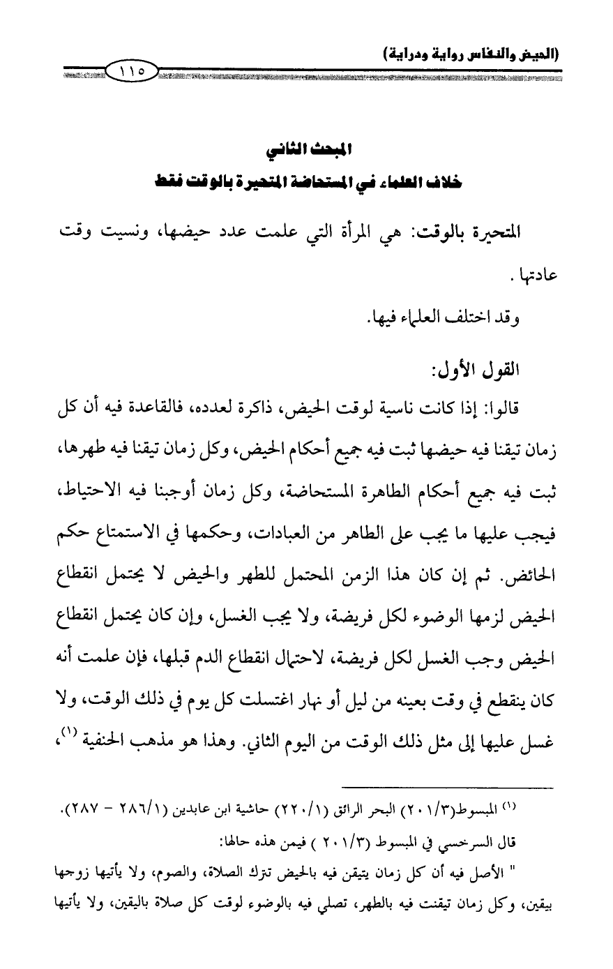 المبحث الثاني: خلاف العلماء في المستحاضة المتحيرة بالوقت فقط