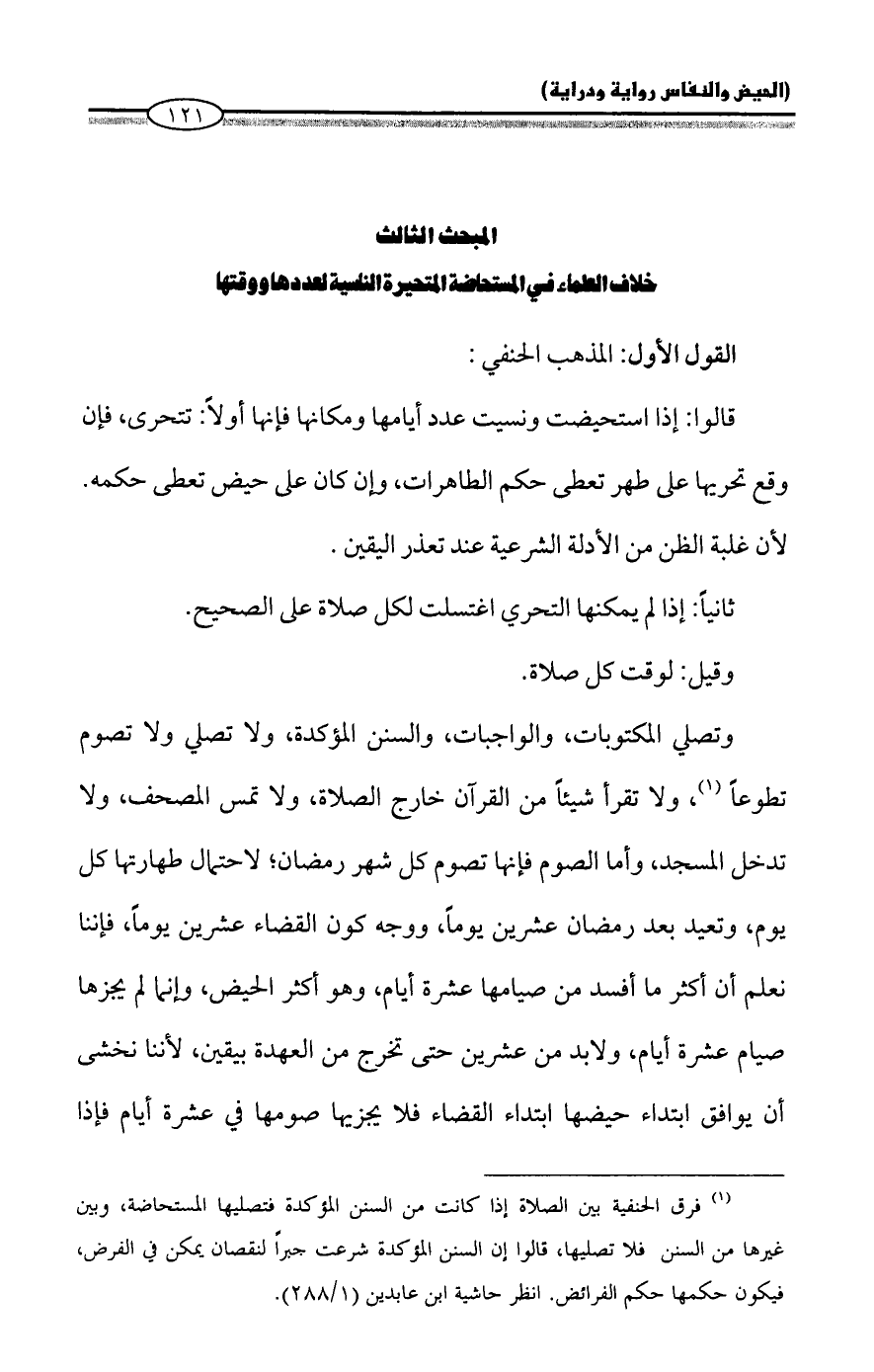 المبحث الثالث: خلاف العلماء في المستحاضة المتحيرة الناسية لعددها ووقتها