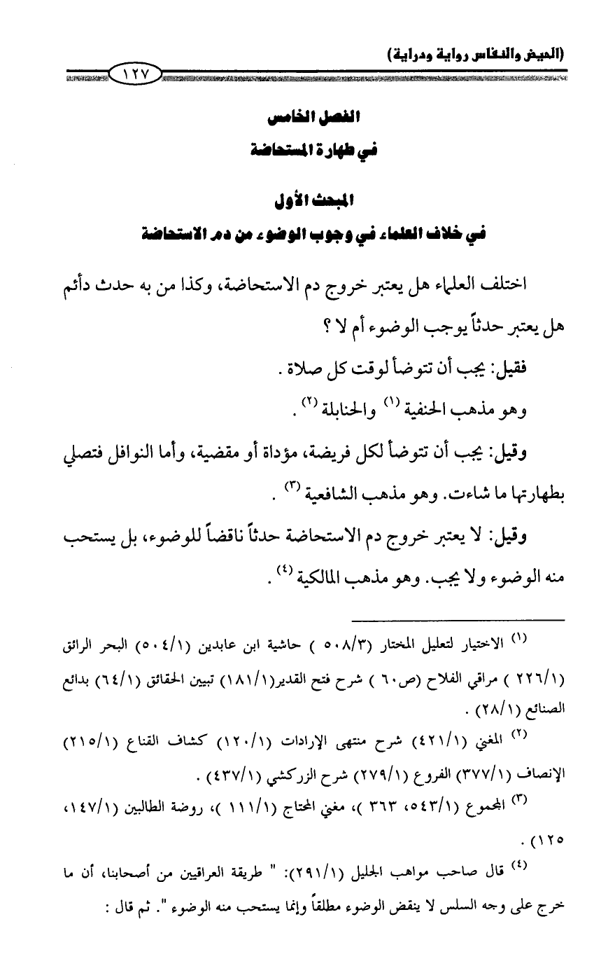 المبحث الأول: في خلاف العلماء في وجوب الوضوء من دم الاستحاضة (*)